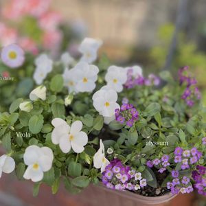 こんにちは♡ 晴れた日が続いています☀️ 小さな鉢のお花がいっぱい咲いてきました🪴 白いビオラとデージーはラゴディアハスタータと一緒でしたが、鉢を動かせなくて、こちらに移動しました🤍💗アリッサムさんを添えて💜 イングリッシュデージも蕾が上がってきたので、楽しみです🌸🌿 四季なりイチゴの枯葉をお世話していたら、わあ〜お花が🤍💚 嬉しくて嬉しくて✨ みなさま♪午後からも楽しいお時間になりますように🍀