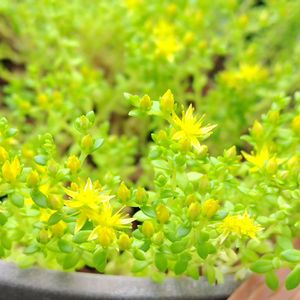 🍀🌻🪴💐🌹🌻🍀 🍀💛セダム・マンネングサ 💛🍀 💐セダムの花言葉 セダムの花言葉は、 (枯れることのない愛)、(星の輝き)、 (私を思ってください)です 💐セダムはベンケイソウ科マンネング サ属の多肉植物で、和名は万年草や ベンケイソウとも呼ばれる乾燥に強 い植物です 💐セダムの名前は、ラテン語のsedere (座る)に由来しています、これは地面 を這うように広がる成長の様子から 名付けられました 💐セダムの草丈は種類によって違いは ありますが、3~50㎝くらいです、日 なたと水はけの良い用土を好み、過 湿や蒸れを嫌います 💐セダムの花期は4~11月、小さな星 型の黄色い花が無数に咲きます 🍀🌻🪴💐🌹🌻🍀
