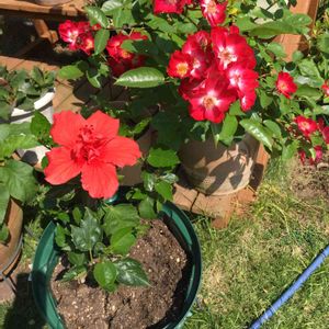 庭に咲いている薔薇達🌹🌿 上の真ん中はギョーの薔薇さんタグが無くなり名前が不明に… 名前分かる方教えて下さい…