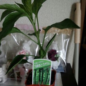 万願寺とうがらしです これもお父さんが買ってきた苗 です 万願寺とうがらしは美味しいので大好きです♡