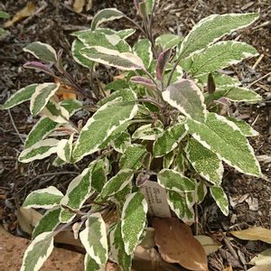 2pic目になります☺️ 【セージ】 『トリコロールセージ』 斑入りの葉が素敵💕 斑入り好きな私… リーフとしてお迎えしてみました🥰 ー特性ー シソ科サルビア属 耐寒性多年草(低木) コモンセージの変種 低温期は葉の斑の部分が赤みを帯び美しくなる 夏は強い光を避けると綺麗な葉色を保てる 草丈 30-60㎝ ザラザラした葉に三色(緑、白、紫)の斑入りと特色がある 開花期は夏で、ラベンダー色の花が咲く (お花も咲くとは楽しみです)