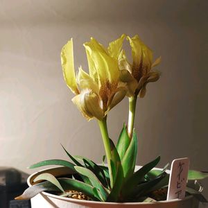 ケイビアヤメ💕💕 やっぱりお迎え😊 仕事を3時間さぼって産直市へ。 可愛い😊😊 紫も素敵ですが、このニュアンスイエロ ーもとっても素敵です。 産直市 318円😊😊