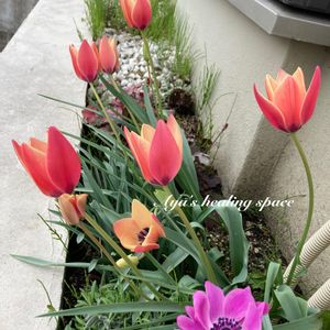 39℃代の熱が3日続いたけどやっと平熱まで下がった😅 今年は初めて原種系のチューリップ植えたけどかわゆい❤️