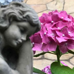 顔馴染みの美容院のおばちゃまに分けて頂いた紫陽花、良いお色です。(*^^*)