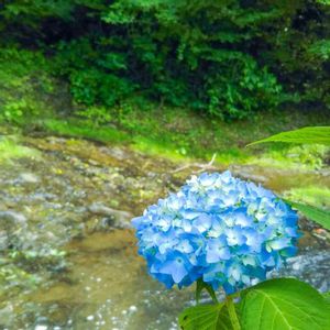 紫陽花 近所の滝と水車のある公園です 水辺の紫陽花は涼しげでいいですね💙 6/18撮影