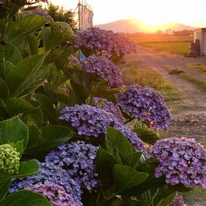 夕陽と紫陽花と田んぼ 紫陽花コンテスト最終日なので、田舎の風景3枚目です(*^ω^*) 前の2枚とは、別の場所ですが、ほとんど変わりませんね…周りどこもこんなんです(^ー^;) 新潟県田上町の護摩堂山紫陽花園には、3万株の紫陽花が有るそうだけど、山を登る体力が無い(。>ㅿ<。)一度は訪れたい場所です(*^_^*)