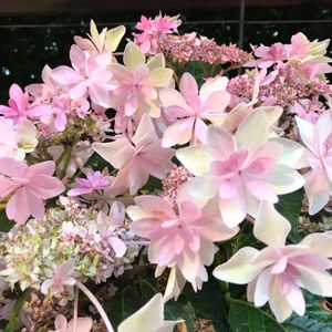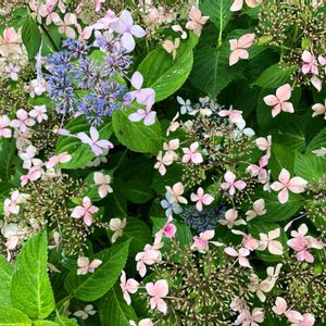 あ〜 なんとも言えない、この色合い😍😍😍 惚れてまうやろ〜😌 とある本屋の庭のアジサイ。去年は木が育っておらずこんな華やかには咲いていなかったはず。 色も形も💘😳 全部がツボなので、上から撮ってみました。 恋に落ちた気分です。
