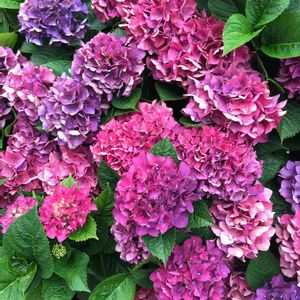 ピンクから紫、いろんなグラディエーションの色があります。色見本のように微妙に違う花色。葉の緑もきれいでした。親戚の家の庭に咲いていました。