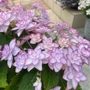 ガクアジサイ・ひな祭り 園芸店のタグには ハウスで早めに咲かせて出荷 ふちどりのハッキリ入る人気のタイプと記載 まだまだ紫陽花の季節ではないと思いつつ お花の色味に惹かれて…