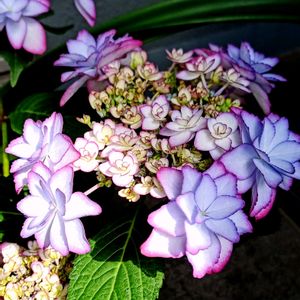 私が一番好きな紫陽花、万華鏡が咲きました💠 5月30日投稿のひなまつり 下の方で咲いている子が綺麗な青になりました🩵