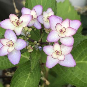 少し変わった紫陽花を集めてみました 1️⃣加茂セレクション【凜】 シックなお色 picの方は誤字です💦 2️⃣ブラックナイト 夜🌃ではなく騎士 初夏なのに秋色ですね~ 3️⃣ひな祭り 4️⃣暗い💜に水色の覆輪 5️⃣コンペイトウかしら?