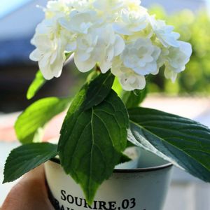 最近気になってた純白の紫陽花、買っちゃいました。🐧🎵 タグに「ひなまつり」っ書いてありました。