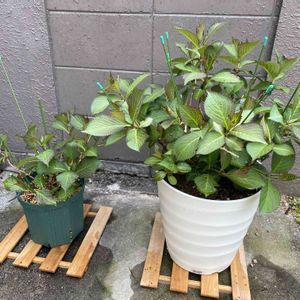 ②新品種の紫陽花が鉢で育てられていました。 挿し木で増えていくのでしょうね😄
