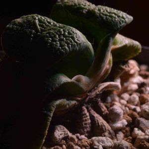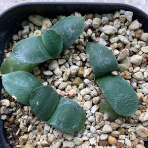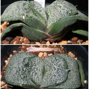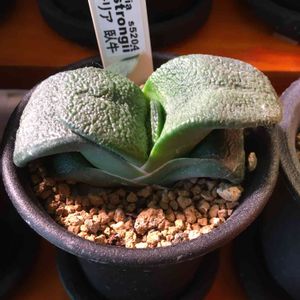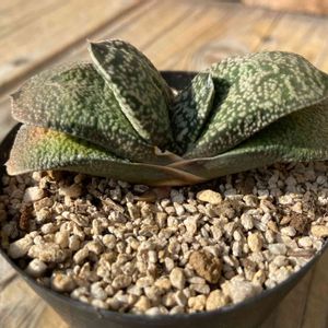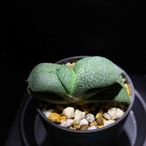 一年前に購入したガステリア臥牛さん。主に育成ライトで育ててます。 成長はとても遅く、この間1枚半の葉が増えた程度です😅。