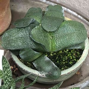 おはようございます😊母からお優しいみなさんにお願いです。「是非この植物の名前を教えてください。」是非よろしくお願いします。 名前教えて頂きました✨「ガステリア 臥牛」というそうです。ありがとうございました❤️母も大喜びしています🥰