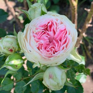 5月上旬 咲きかけのまま数日たちましたが、こちらの苗には蕾がたくさんつきました。 秋苗で育てていたパシュミナというバラです。 アンティーク風、カップ咲き、小ぶり、初心者にも育てやすい、とのことで魅力的です。秋には咲かなかったせいか、一番元気、咲いてほしいなあ🌹