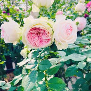 おはようございます。 ようやく開花したバラさんたちです。 エマ様は香りが強く、ローズジャムにも合うそうです。 うちのエマ様は、ジャムにできる程花数付けないよ~。