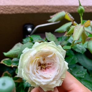 バラゾウムシに繰り返しつぼみをやられたけれど、やっとお花が見られました💕 花びらは傷んでいてアザミウマ居そうだけど、、😆💦