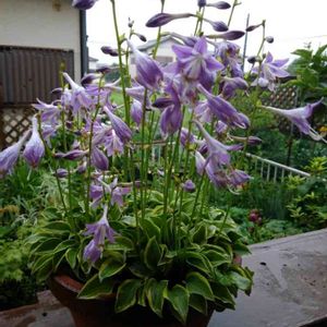 今日は雨降りです☔ ミニのギボウシ、お花もきれいでかわいい💓🎵 お気に入りです😄🎵