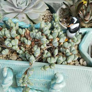 こんにちは☁️ 🏷️『トトの日』🐟 昨年の夏はお水をあげすぎて弱ってしまったので、今年は控え目にしたらカリカリになってしまった碧魚連🐟🐟🐟 金魚鉢をイメージして作った大きめの鉢に植え替えてから約2ヶ月~ まだまだダメージが残っているものの、少しずつふっくらして、赤い茎も出てきました~😆💕 もっとモリモリになって欲しいです(*•̀ᴗ•́*)و 残った土で作った金魚❤️🖤 小物は作るのが難しいです😅💦