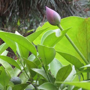 柚子の木の隣り蓮鉢 茶碗はす🪷の蕾が上がって来ました♪💗