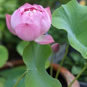 曇り☁ 朝方まで雨が降ってたからか、少し涼しいような…💦 昨日投稿の茶碗蓮🪷 今朝外に出ると開いてました💖 やっぱり、蕾の方が美しいかな😅