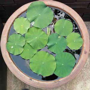 茶碗蓮の白花ゲット❣️ 先日ホームセンターで花の終わった見切り品を見つけました💕 購入した時は、葉も枯れかけている状態。 この時期の植え替えはダメなのだけど、この状態だと蓮根が育たないと敢えて挑戦しました。 プラスチックの大鉢を100均で購入、田土に水を混ぜ鉢内でポリポットを切断して移植しました。 おかげで新葉がみるみる内に鉢いっぱい💕 来年の植え替えまでこの調子で育てば蓮根も大きくなる筈。 上手くいけば3倍に増やせます❤️ 来年はピンクと白花の蓮の花が見られると思います。 楽しみが増えました〜🐣