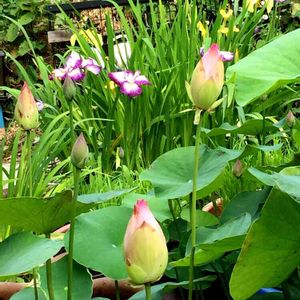 茶碗蓮の花芽が上がり、ツボミもかなり大きくなりました🐣 この調子でいくと、来週には今年初めての美しい蓮の花を見れそう💕 今の時点で10本花芽が上がっています。最近の高温でちょっとペースが早いかな❓ 去年は約100華咲きましたが、今年は幾つ咲くかな〜😙 毎日が楽しい時季となりました🐥