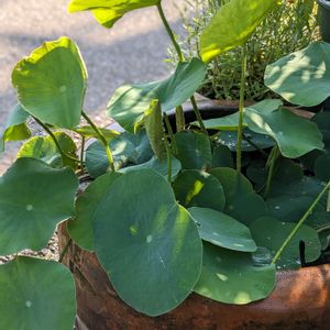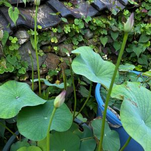 今日、園芸店で茶碗蓮を見てきました❣️ 普通の蓮より小さいけど、私にしたら大きくて。 決心がつきませんでした😆 ピンクの花が咲きそうな蕾が見えてます🪷