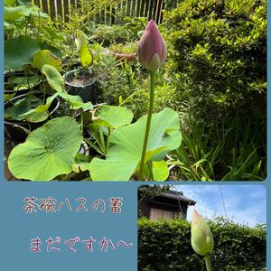 |ョ''ω''〃)おはようございます♪ 前回の投稿から1週間経ちました😊 初めて咲いてくれる茶碗ハス🪷の開花が待ち遠しく・・また🆙しちゃいました💕