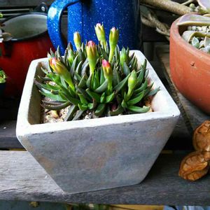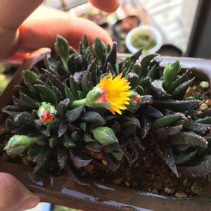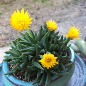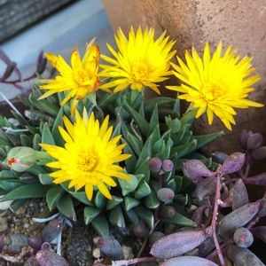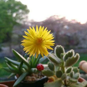産直で鉢付430円、 3時頃咲くからサンジソウ 春から秋にかけて長く咲くようだ! こちらも多肉植物のようです はな花さん ありがとう💕 これで育て方がわかりました🎵