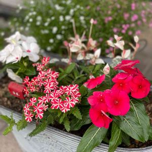 こんばんは🤗 ワケあって暫く花を育てる事から遠去かり 出先の花や風景ばかり投稿してましたが 最近になって少しづつ… ほんの少しづつだけど 『また寄せ植えしてみようかな』って 思える心のキャパが出来てきました☺️ 皆さんの様な知識やセンスは無く 完全なる我流でテキトーな寄せ植えだけど 少しづつ再会しようと思います🌺 植えたばかりでスカスカだけど💦 モリモリ増えてこの隙間を埋めて くれたらと願いながら育てます🤗