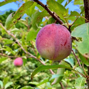 青空☀️とスモモ🥭✨。 我が家の晩生スモモ・太陽が色付いてきた😃。 毎年、鳥🐦🐦⬛にやられてしまうが、ここまで来るのは久しぶり。 8月に食べられる美味しい品種なんだが、ほぼ味わった事がない😞。 今年は1個だけでも食べてみたい🤤。
