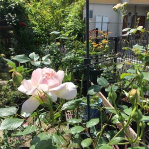 今朝の🌹、マリーヌ。 いつもは、可愛らしいピンク色 ですが、 今朝のマリーヌは、ほんのり クリーム色。 清々しいお姿です。