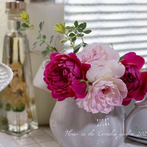 おはようございます«٩(*´ ꒳ `*)۶» 今朝は晴天、とっても暑く日差しがいたいです(×∀︎×๑ ) この暑さ中でのお庭仕事は危険かも… という事で、今朝は夜明けごろからお庭に出ていました( ˶ˆ꒳ˆ˵ ) 今日もこれからですけれど、最近病院通いでしたので朝のお水やりだけで手一杯でした( ฅ ω`)~゚ 今朝は暑くなる前からお庭のお手入れ、存分に楽しみましたよぉ〜୧⃛(๑⃙⃘⁼̴̀꒳⁼̴́๑⃙⃘)୨⃛ といいましても朝摘みのバラさんたち、いつもとあまりかわりばえしませんよねΣ(ノ≧︎ڡ≦︎) 香りはとっても濃厚ですよぉ( ˘͈ ᵕ ˘͈ ) 父も救急病棟から一般病棟に病室に移ることができてひと安心です。 あれやこれやとうるさいですけどね˘•ω•˘ ).。oஇ 今日もとても暑いと思いますので、熱中症などお気をつけくださいませ( ⁎ᵕᴗᵕ⁎ )♡ 今日も素敵な一日をฅ( •ω• ฅ)ガオ-♡