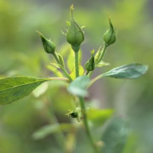 つぼみシリーズ 今年、いきなり地植えをした1年生苗のアイスバーグです。 夏場に、ほぼ葉を落としてしまい、今は、新芽が出揃ってきた感じです。 一部分で、蕾が見え始めてきました。 うちにある、唯一の殿堂入りのバラです^^
