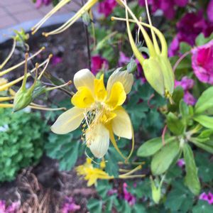 オダマキ イエロークイーン✨ キリリとした横顔は、正面から見ると可愛らしくもあります😃💛 日陰で育てているので、色が少し薄めかなぁ…☺️