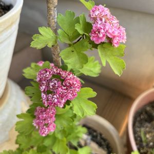 八重紅花サンザシ ピンクの可愛いお花です。 秋には赤い実がつきます💓 花木ですが、大きくなりすぎず鉢植えで楽しんでいます✨✨