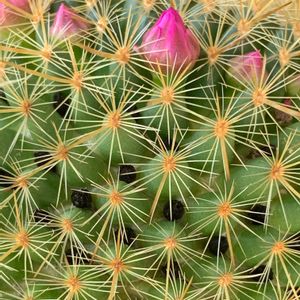 これ、なぁに? サボテン🌵 間もなく開花なんですが… これは、いったい何ですか? 長年いる子なんですが…はじめて見ました。 規則正しく凹の部分に黒い丸いものが…