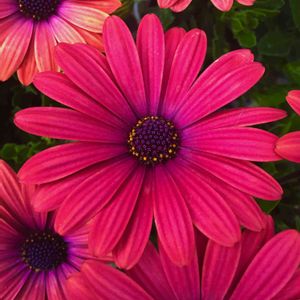 オステオスペルマム💖 今朝の一枚☆ 先月投稿したオステオスペルマムパティエシリーズのアンティークレッド(pic右下に少しだけ映っている花です)私には冒険色だったので1株だけ地植えにしたんですが、もう少し増やしたくて色違いのベリーズパフェも買い足しました✨ 名前も色も可愛いです🥰