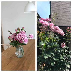ブルーライトさん 今年は ピンクぽく咲きました。 強剪定するのになぜか 背が高くなるー😳 カットして飾ったりいい香りがー😍