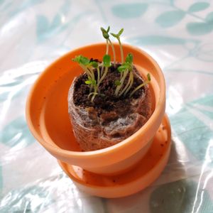 種から育てるシリーズのガチャガチャで入手したレモンバーム ちょびっと芽が出てきて可愛い