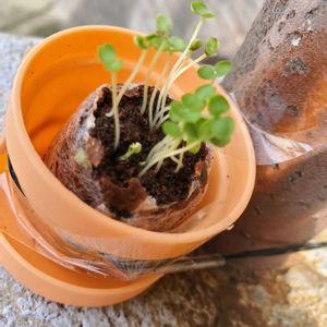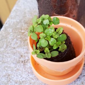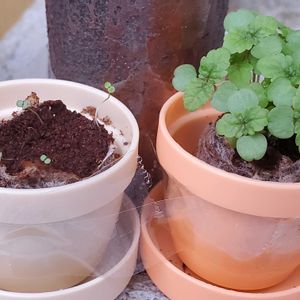 レモンバーム植え替えた 周りの紙剥がすの大変やったな〜 根っこ傷付けたかなごめんな でかい鉢植え用意してたけど、一回り以上大きい鉢植えはダメなことを土入れてから知って(調べ不足) 小さめのポット?探してたら都合良く庭に転がってたラッキー 無事植え替えられたかなあ