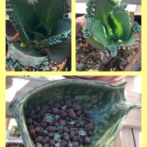 こんにちは☀️ 令和の芽🌱投稿⑨ 小株を葉につけて繁殖する植物 葉の縁にたくさんついた子株がこぼれ落ち、 奥には まだ子株が並んでます