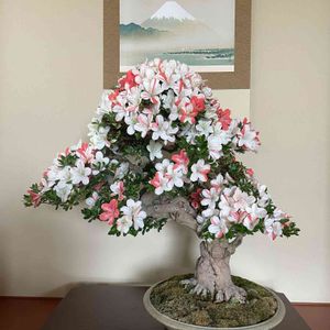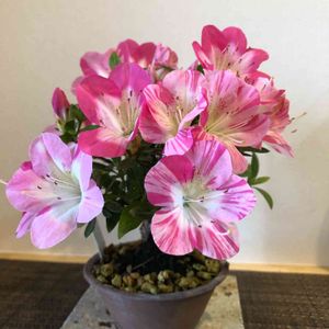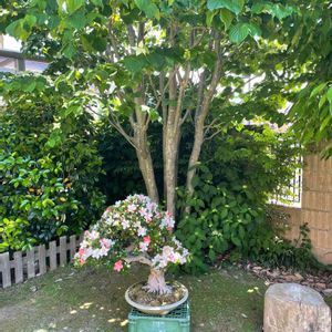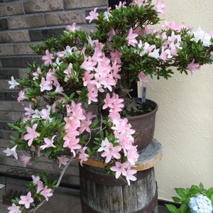 ツツジかな? サツキかな? 名札が行方不明に…(*ノ∀`*)ゞエヘヘ 今年はひときわ花がたくさんな 盆栽仕立て🪴 お疲れさまです⑅◡̈*
