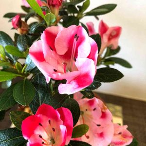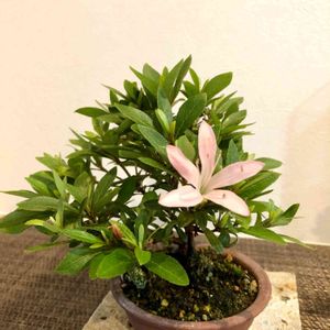 さつき(幸の煌) 優しいピンク 花芽はあと2つ 小品盆栽は難しい🪴