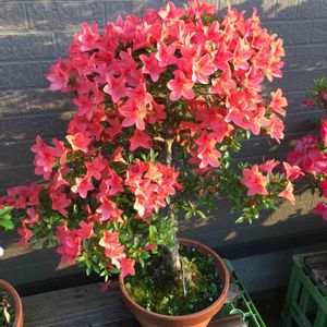 盆栽のさつきです🤗 我が家の唯一の盆栽 20数年来殆んど手も掛けず 主体の幹は無くなり 枝が大きくなり、毎年このように花を咲かせてくれます 今が見頃となりました