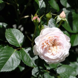 おおがファームさんからお迎えして三年経ったERエミリー ブロンテさん 。蕾がたくさん上がってくれました。香りは抜群ですし、ゆらゆら垂れてる空飛ぶ円盤状の花がたおやかでとても気に入っています。 唯一の難点は秋の黒星病です。猛暑後に気温が下がると大きな黒点が広がってしまい、その時はほとんどの葉をちぎり捨てています(泣)。 実は、自分がエミリーブロンテ著『嵐が丘』の大ファンであるという理由から、この品種を大事に育てています。花色が若干地味めで淡く儚げでありながら花弁がみっちりと詰まっているところが、エミリーとその姉妹たちを連想させてくれます。それぞれの作品にひけをとらないくらいにドラマティックな人生を歩んだ彼女達を想うと、肌寒い季節に現れる激しい黒星病の枝葉ぶりすら愛おしいでーす。
