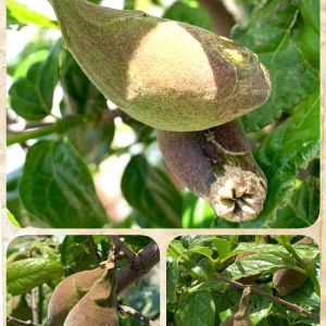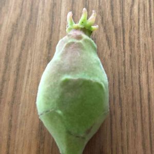 ロウバイの実 枯れた実を冬に見つけて花後を楽しみにしていたんです🤗 なんとも不格好な面白い実ですね😲 ちょっとビワの実に似てる❓ 最初、キズがついていると思ったところは、表面に元からあるようです。 花床が大きくなったということですが、こんな風に表面の形がそのまま引き伸ばされてこうなったのでしょうか❓