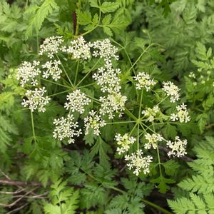 トレイル脇に咲いていた白い小さい花。可愛いと思いましたが、調べてみたら、ドクニンジンでした。欧州原産の外来種でした。英語では Poison hemlock と呼ぶそうです。見かけは可憐なのに毒草とは知りませんでした。学名 Conium maculatum